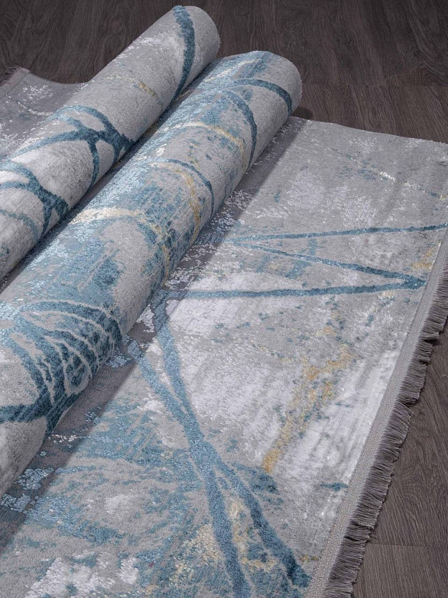 Коротко: «Ковер AJMAL LP315A GREY / BLUE» (AJMAL, SIRMA, Турция) — ковер для дома, гостиной. материал: полиэстер, стиль: в современном стиле, цвет: серый, синий, ворс: 10 мм, плотность: 462000 точек/м², основа: джутовая, подходит для современного интерьера, страна производства: Турция.