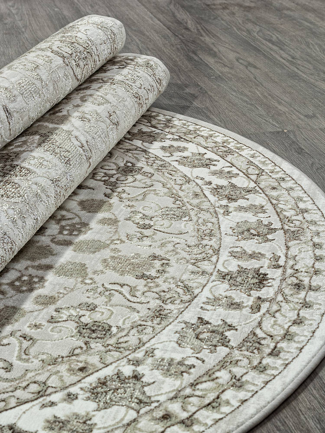 Коротко: «Ковер AZIZA O1467 070 Овал» (AZIZA, MERINOS, Турция) — ковер для дома, гостиной. материал: полиэстер, стиль: в классическом стиле, цвет: кремовый, бежевый, ворс: 8 мм, плотность: 556800 точек/м², основа: джут, ориентирован на классическую подачу, страна производства: Турция.