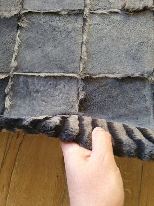 По умолчанию мы предлагаем выполнение края ковра с так называемым подворотом – то есть обработка края ковра не видна (она скрыта) – сбоку виден все тот же мех. Смотрится это очень красиво и богато! При желании сэкономить, можно выполнить края ковра обычным стандартным оверлоком нитками (спрашивайте примеры (варианты) отделки края ковра у наших консультантов).