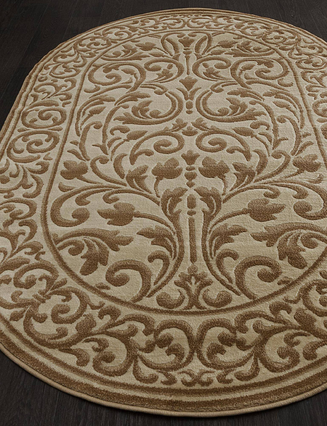 Коротко: «Ковер IZMIR D719 BEIGE Овал» (IZMIR, MERINOS) — ковер для дома, гостиной. материал: полипропилен, стиль: в классическом стиле, цвет: бежевый, коричневый, ворс: 10 мм, плотность: 400000 точек/м², основа: джут, ориентирован на классическую подачу, страна производства: Россия.