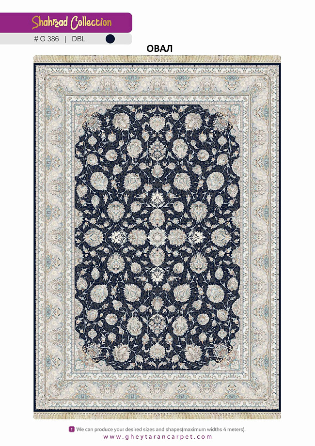 Ищете качественный ковер в любую комнату? Рекомендуем обратить внимание на SHAHRZAD 1500 ACRYLIC G386 DBL 000 Овал из коллекции SHAHRZAD 1500 ACRYLIC! Его стильный дизайн станет украшением интерьера и привнесет в него оригинальные нотки.