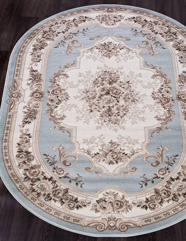 Коротко: «Ковер VALENCIA DELUXE 4015 L. BLUE-BROWN Овал» (VALENCIA DELUXE, MERINOS) — ковер для дома, гостиной. материал: полипропилен, стиль: в классическом стиле, цвет: голубой, коричневый. бежевый, кремовый, ворс: 8 мм, плотность: 304000 точек/м², основа: джут, ориентирован на классическую подачу, страна производства: Россия.